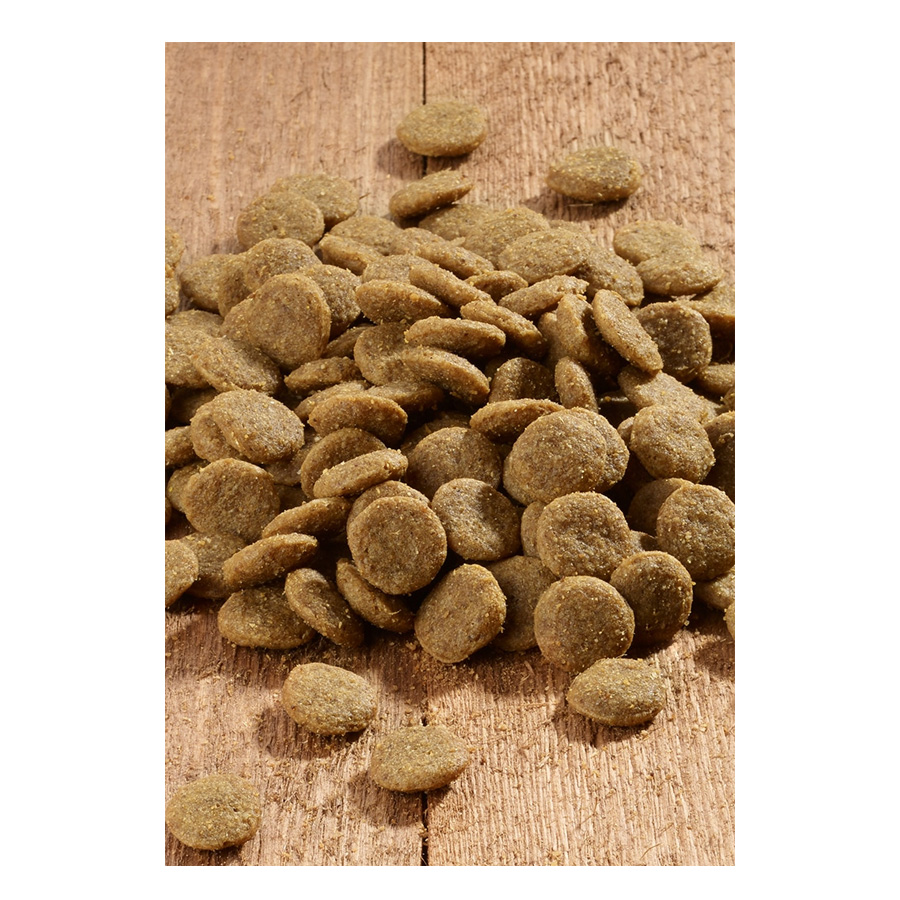 Žitarice (pirinčano brašno, ječam, kukuruzno brašno), meso i nusproizvodi životinjskog porekla (goveđe brašno, brašno od živine), povrće (pahu ljice od krompira*), riba i riblji nusproizvodi (brašno od morske ribe), seme (lana i badelja), ulja i masti, nusproizvodi od povrća (sušene kriške cvekle, celu loza), jaja i proizvodi od jaja (celo jaje u prahu), ekstrakt kvasca* (izvor manan oligosaharida). * osušen